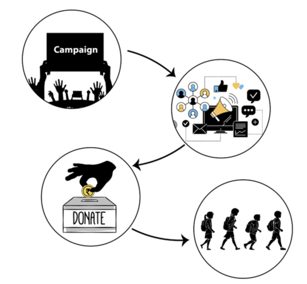 Sessions to Youth on Drugs usage and consequencesEvents for underprivileged womenHealth Camps for Kids and woman on current medical situationsHygiene and diet plans for everyone Start a Campaign Sign in or register and create an online fundraising campaign by filling in the required details. Create Awareness Once the campaign has been created, share the link on Facebook, Twitter and other social media channels and let your friends know. Raise Funds Raise Funds Tell your friends and family that they can support Akshaya Patra by What is a fundraising campaign?
